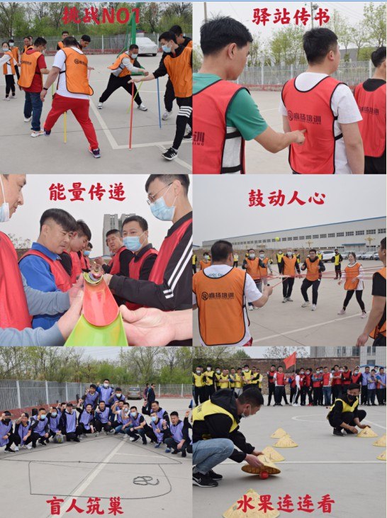“皇家战队”、“破冰小队”、“红色风暴”、“奋斗小队”四支分队,开展能量传递、鼓动人心、盲人筑巢、水果连连看等项目。在拓展培训中,队员们精神集中,团队气氛热烈,现场热情火爆。