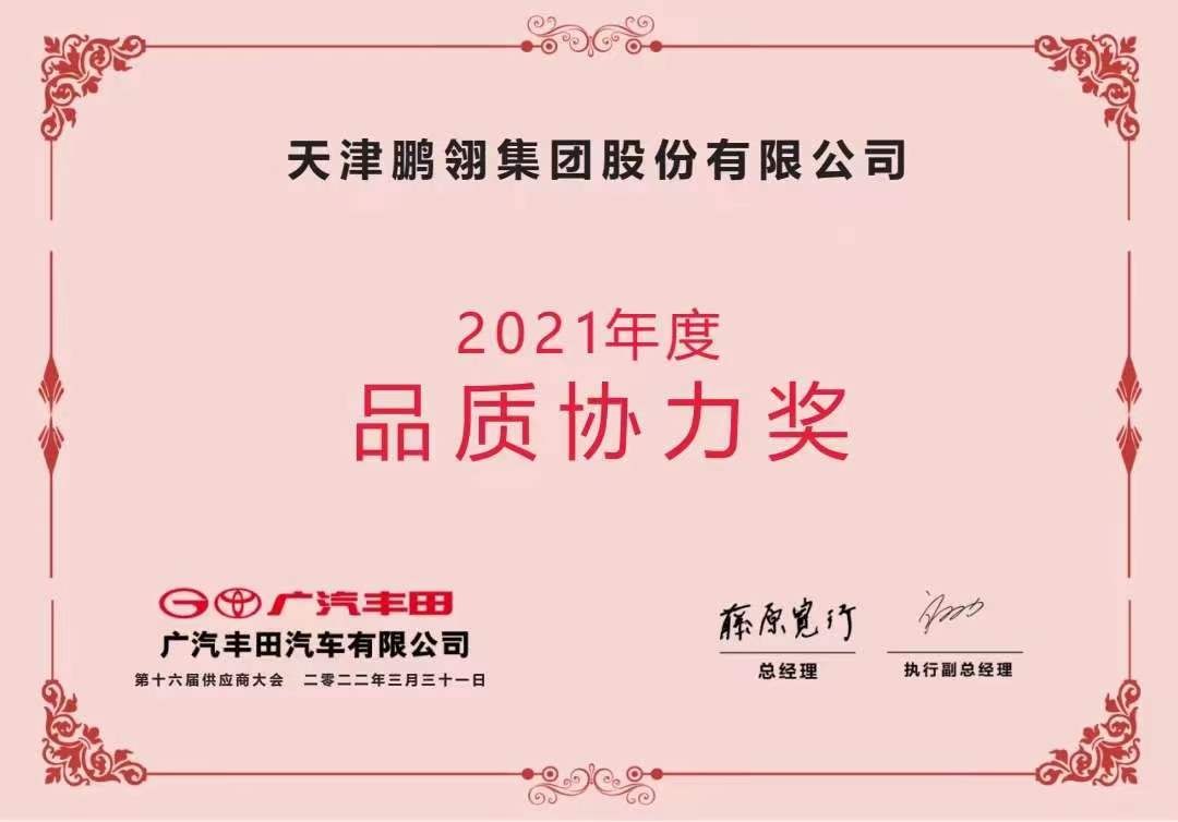 金沙9001以诚为本荣获广汽丰田2021年度“品质协力奖”和“原价协力奖”