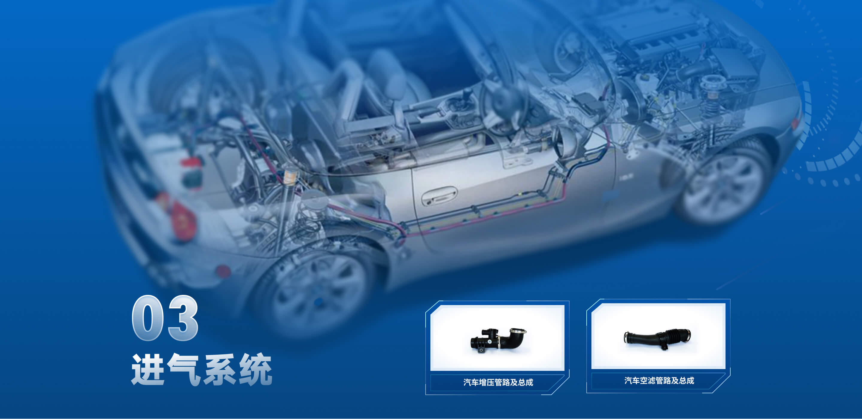 产品分类包括:传统燃油车中的增压管路、中冷器出气管路、空滤管路等,氢燃料电池汽车中的中冷管路等。应用于汽车发动机进气系统,连接增压器、中冷器、进气歧管等主要零部件,将经过涡轮增压器增压的热空气传递至中冷器降温后传递至进气歧管,为发动机燃烧提供充足的空气,增加燃烧效率。